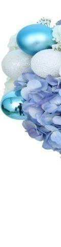 The Blue Christmas Flower Bouquet gives classic Christmas flowers a contemporary twist. The stylish choice for corporate events, end-of-year functions, new baby arrivals, and festive celebrations, this stunning flower arrangement includes 1 blue hydrangea, 4 white roses, 2 white lisianthus, gypsophila sprays, and for added festive cheer, 8 beautiful blue baubles and 5 white baubles. A bauble-icious bouquet for Christmas, it is fabulously frosty and designed to delight the recipient.